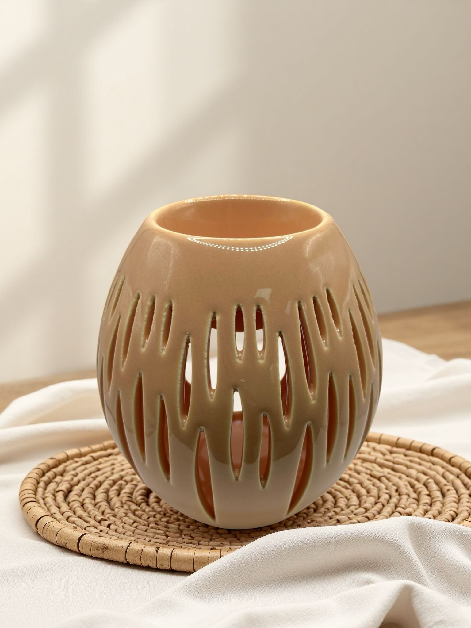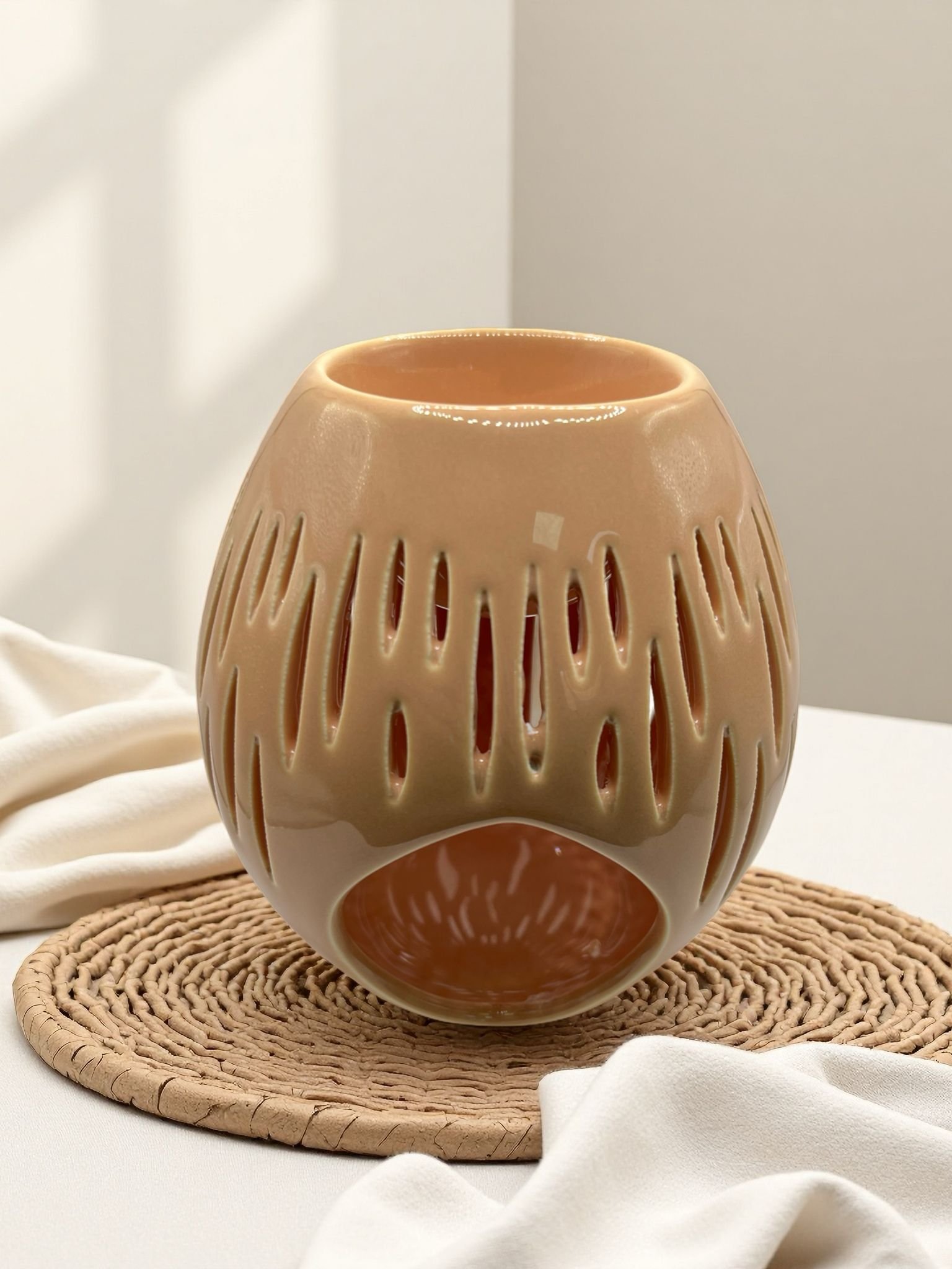 El Quemador de Cera Esfera Beige no es únicamente un accesorio práctico: es también una pieza decorativa que aporta encanto artesanal y un ambiente acogedor. Su forma esférica y su esmalte brillante lo convierten en un objeto de diseño que realza cualquier espacio, combinando estética y bienestar.