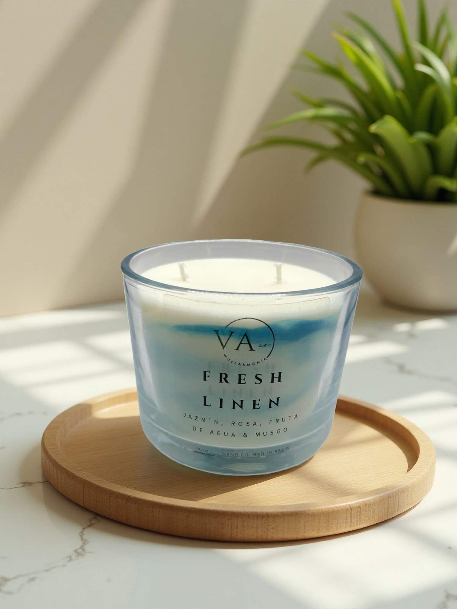 Disfruta de la sensación de frescor y limpieza con el inconfundible aroma del Fresh Linen. Esta vela captura la esencia de las sábanas recién lavadas al sol, con notas puras, suaves y ligeramente empolvadas que aportan una atmósfera de orden, paz y bienestar en cualquier rincón del hogar. 🧺☁️